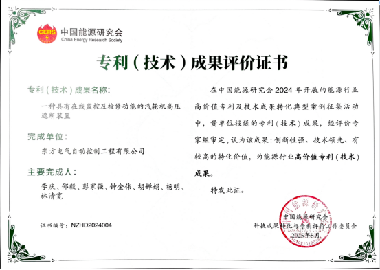 近日,中國能源協會能源行業高價值專利及技術成果轉化典型案例征集活動傳來捷報——東方自控報送的多項專利成果憑借“技術突破性強、行業引領性高、成果轉化效益顯著”的核心優(yōu)勢,成功獲評能源行業高價值(技術)成果!這份權威認可是對東方自控深耕能源電力裝備領域、持續(xù)攻堅關鍵核心技術的實力印證,也為推動能源電力行業綠色低碳轉型、實現可持續(xù)發(fā)展提供了強有力的技術支撐和實踐范例。汽輪機高壓遮斷裝置 給機組裝上“智...